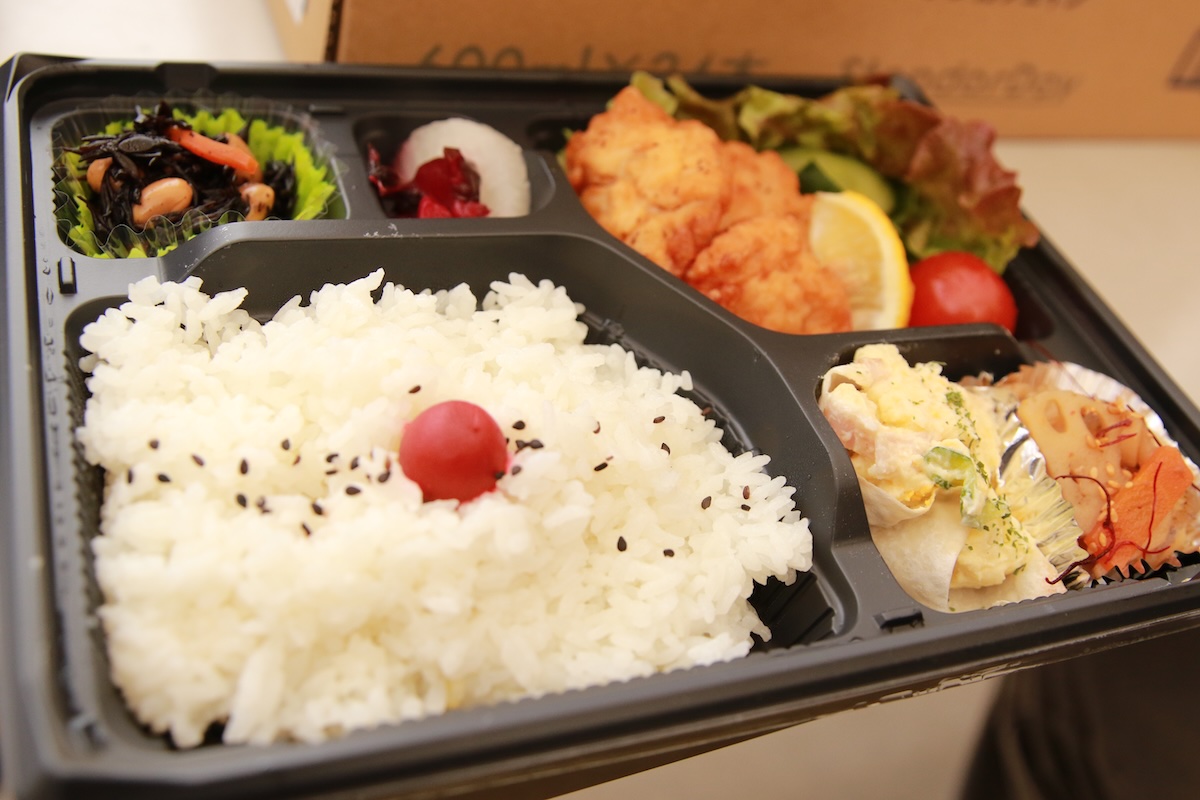 お弁当の内容はその時によって変わりますが、写真は800円のお弁当の内容です(この写真より少し内容・ボリュームがアップする予定です)。